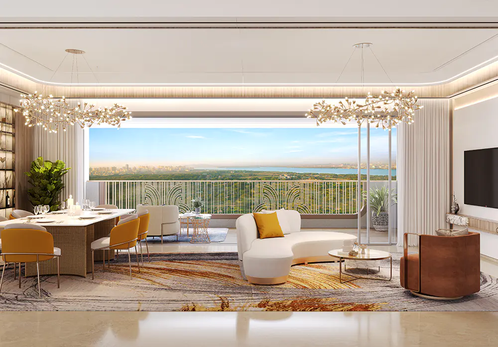 Lodha Elenor is a premium residential tower within the expansive Lodha Premium development, located on Camp Road near Kolshet in Thane. Designed for those who aspire to elevated urban living, Lodha Elenor offers spacious 3 BHK and 3.5 BHK residences featuring large sundecks, panoramic views, and ample natural light. Inspired by Art Deco architecture, the tower blends timeless elegance with modern functionality. Spread across a lush 9-acre estate, the project dedicates 80% of its area to open spaces — including a preserved forest zone with over 100 mature trees — creating a serene living environment. Residents enjoy close proximity to top educational institutions like CP Goenka and Singhania School, leading hospitals such as Hiranandani and Jupiter, and vibrant retail destinations including Viviana and Korum Malls. With excellent connectivity via Ghodbunder Road and the Eastern Express Highway, Lodha Elenor offers the perfect balance of nature, luxury, and city convenience — all delivered by the trusted Lodha